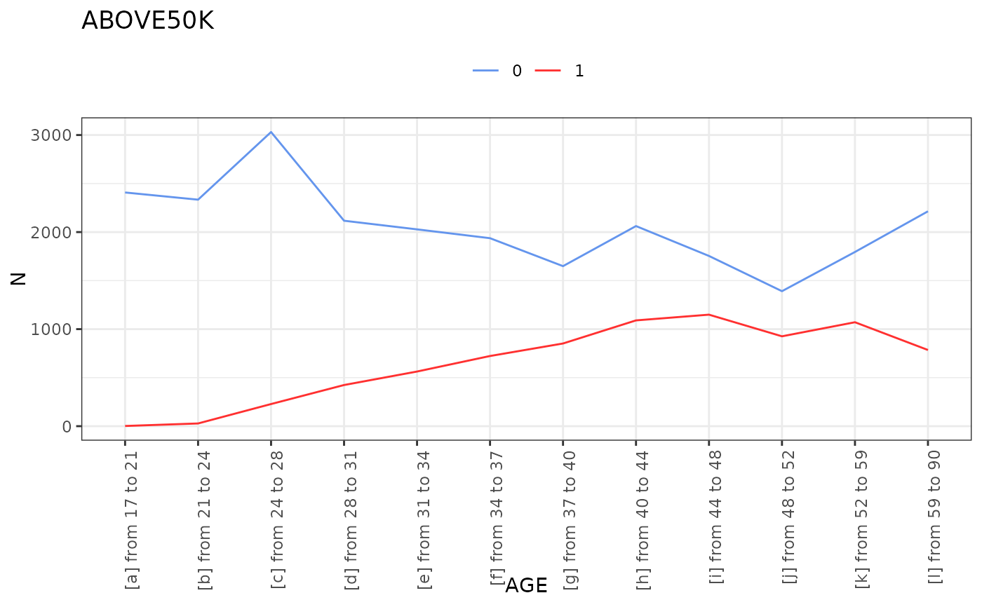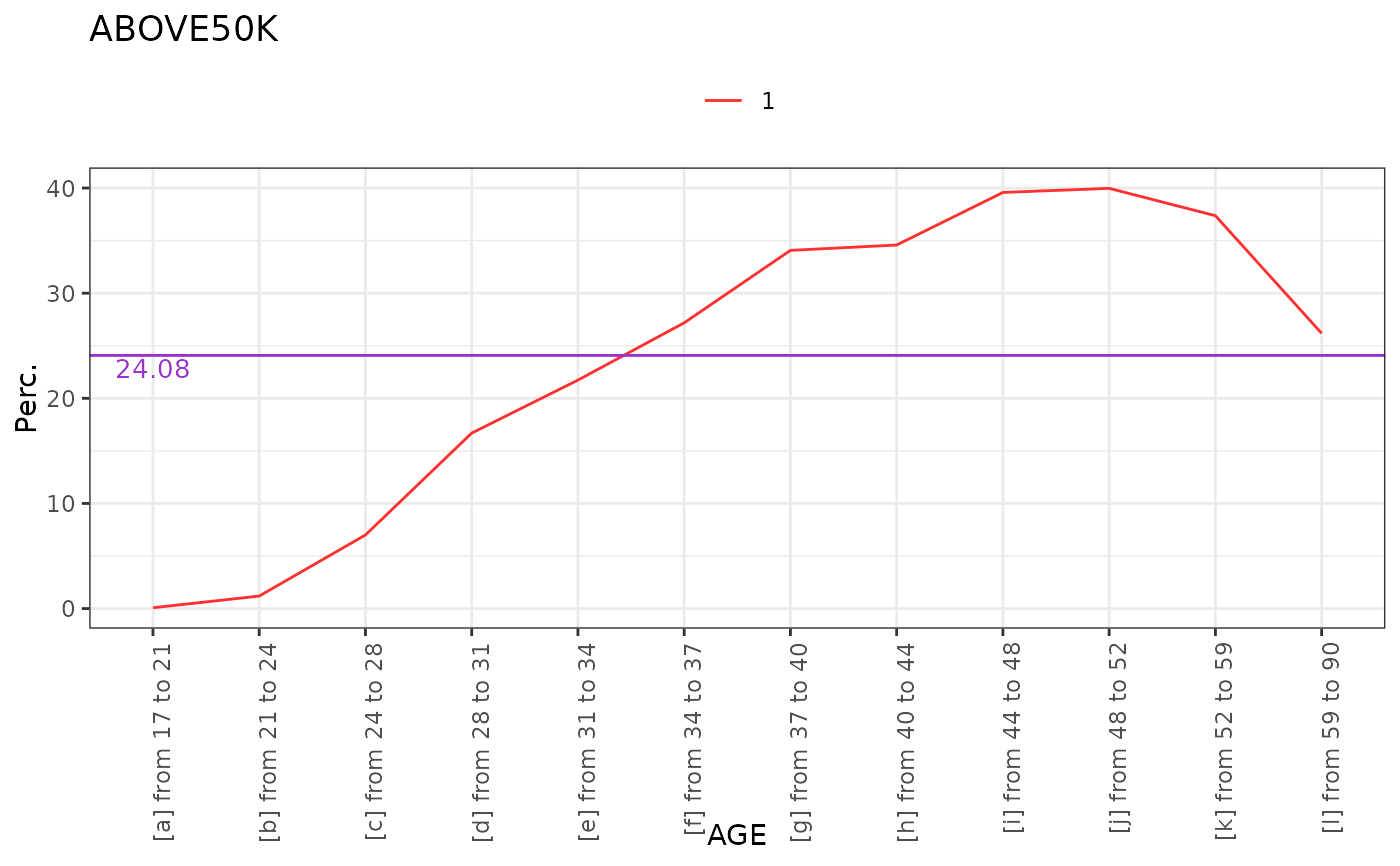 t <- crossvar(adult,target="ABOVE50K", var="AGE",)